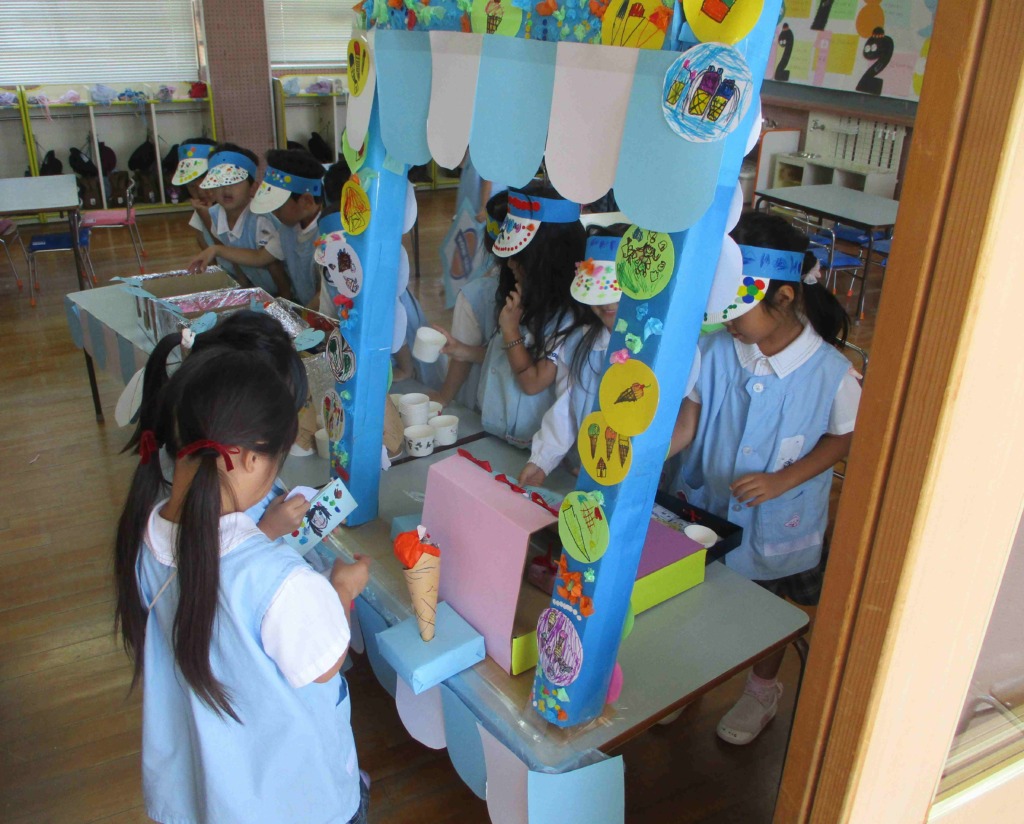 金曜日!!今日も暑い~💦でもこの暑さもいよいよ終わりみたい!!秋がやってくる(*´▽`*)嬉しいなぁ♬暑いけれど子どもたちは今日も元気一杯!!!楽しんでいました(*^^*)そしてついに今日、年中組のお店屋さんがグランドオープンしました(≧▽≦)