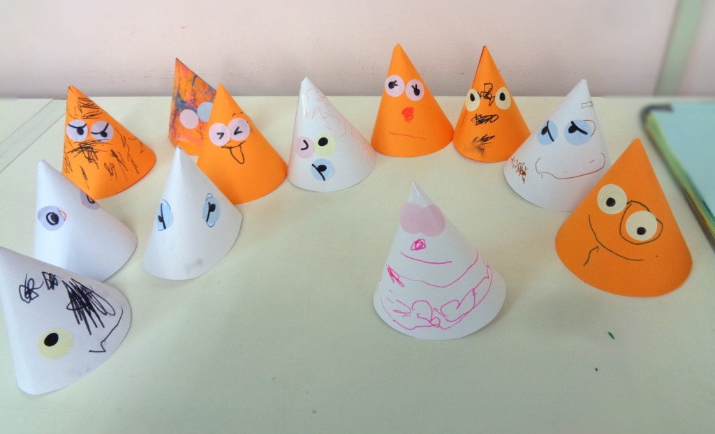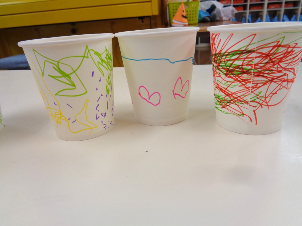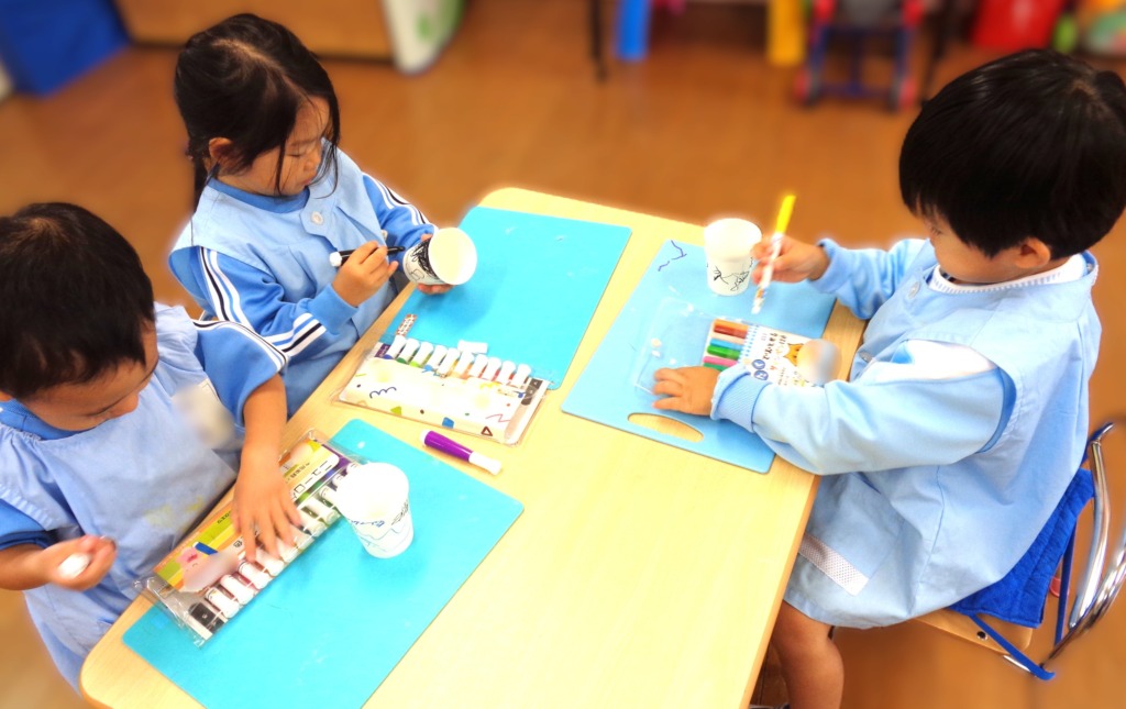 2種類から好きな色を選んで、おばけの顔をマーカーで描きました。