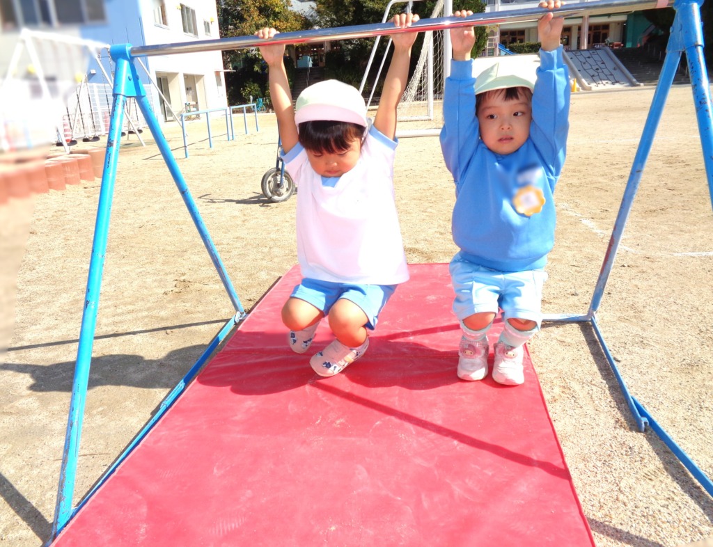 鉄棒ぶらさがりも!