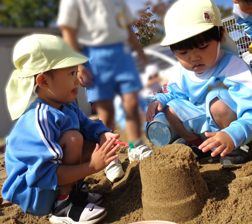 砂場では友達といっしょに穴掘り・お山づくり・道路工事!
