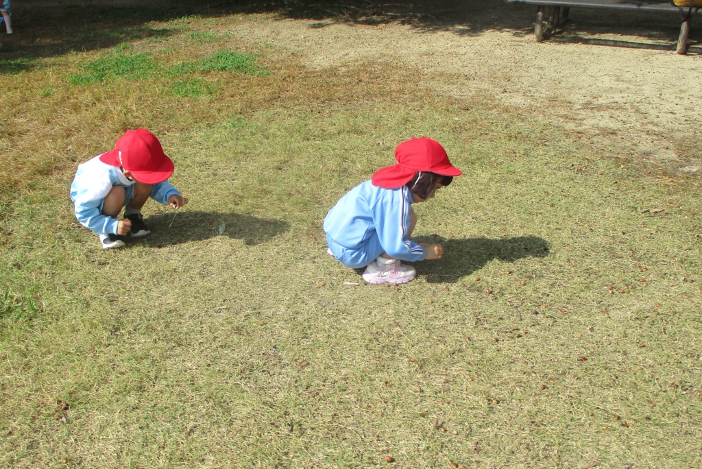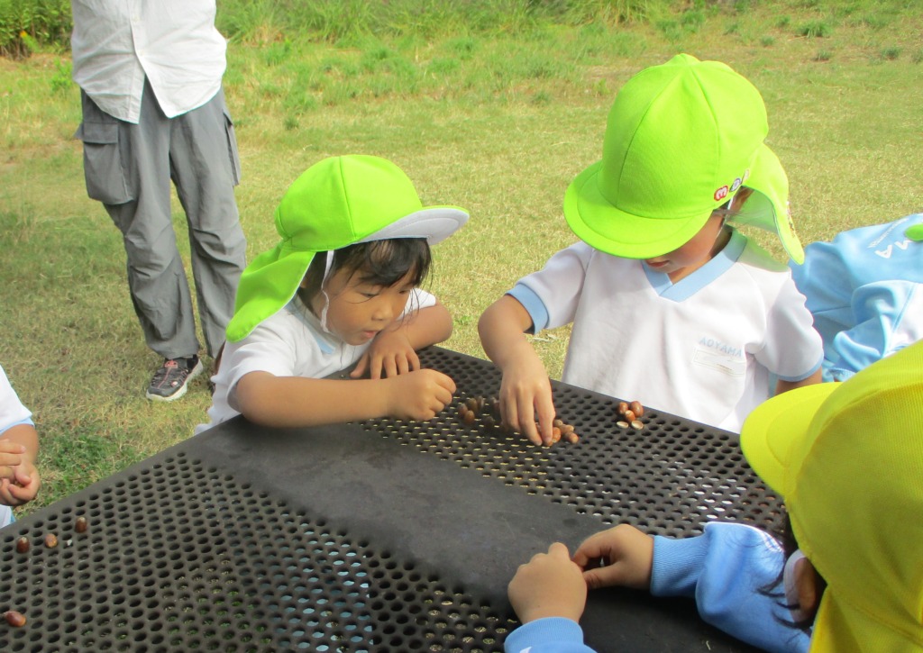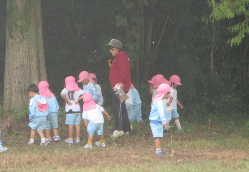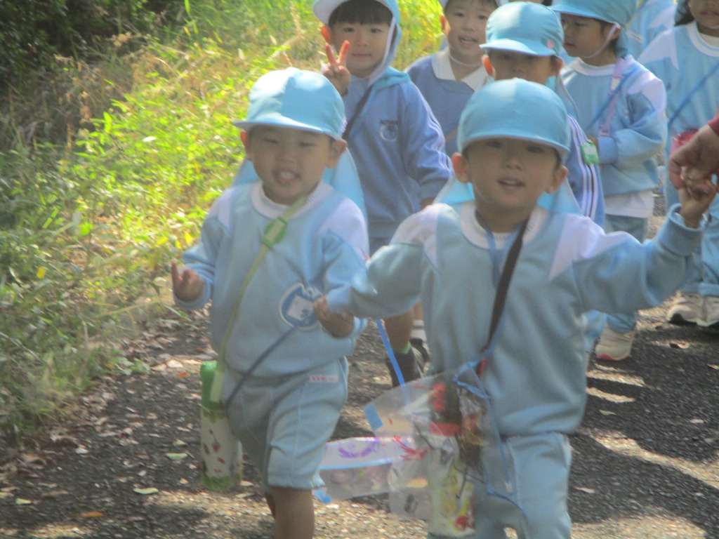 帰る時間になり、みんなで拾ったどんぐりをお土産に、幼稚園へと戻りました。