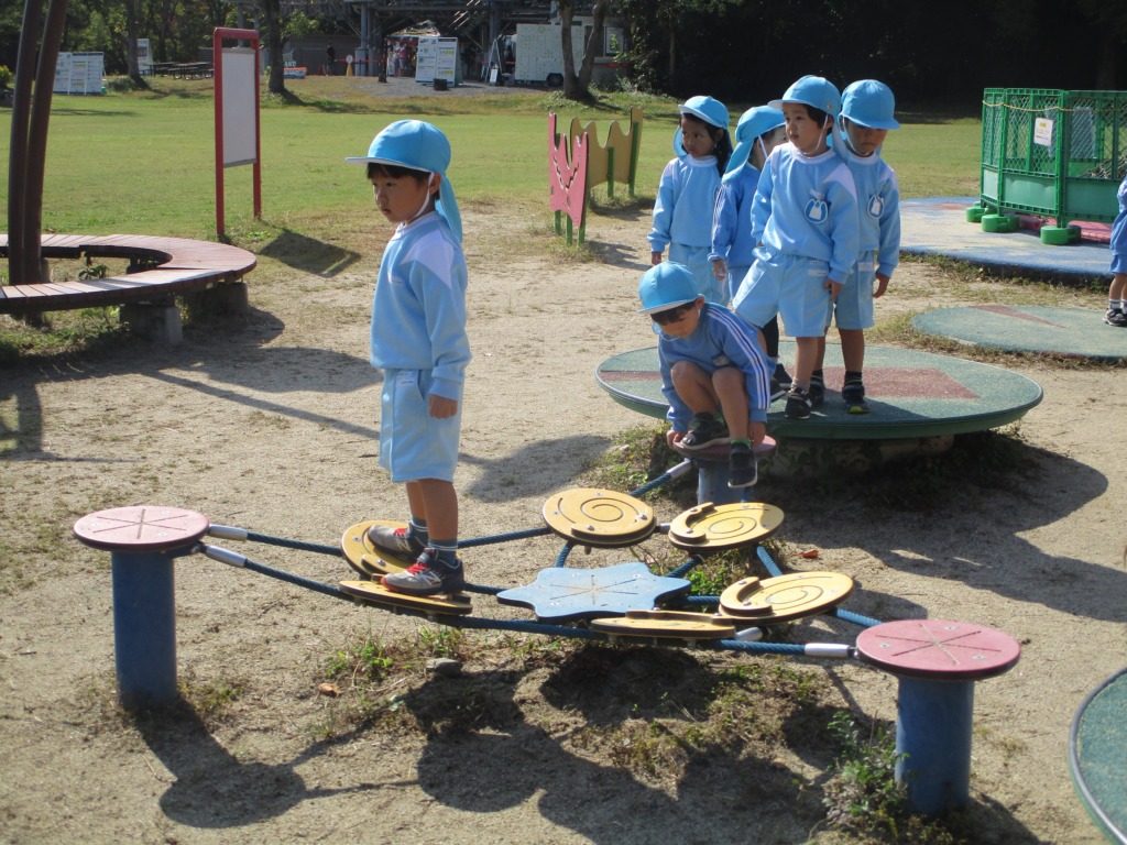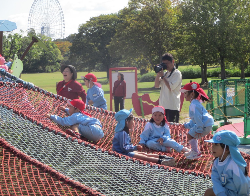 遊ぶ前にしっかりお約束を確認してから、太陽の塔が見える広場の遊具で思いきり遊びました。