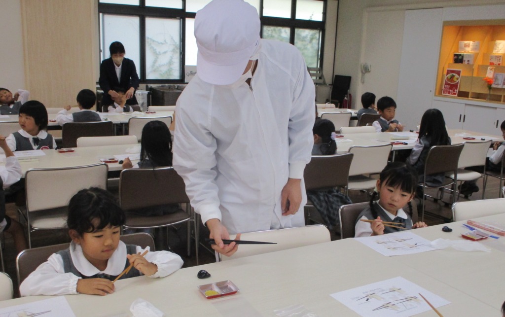 大学のお兄さんやお姉さんたちがそばに来て、お箸の使い方を教えてくれました。