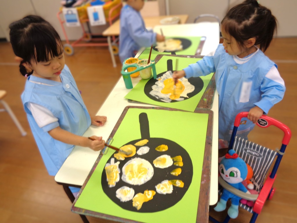 月曜日に、えのぐでお絵かきした『めだまやき』。