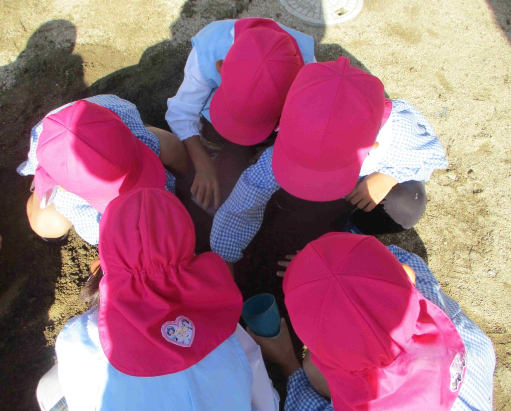 運動場を歩いていると、上の運動場で大騒ぎをしている子どもたちが!見に行ってみると…