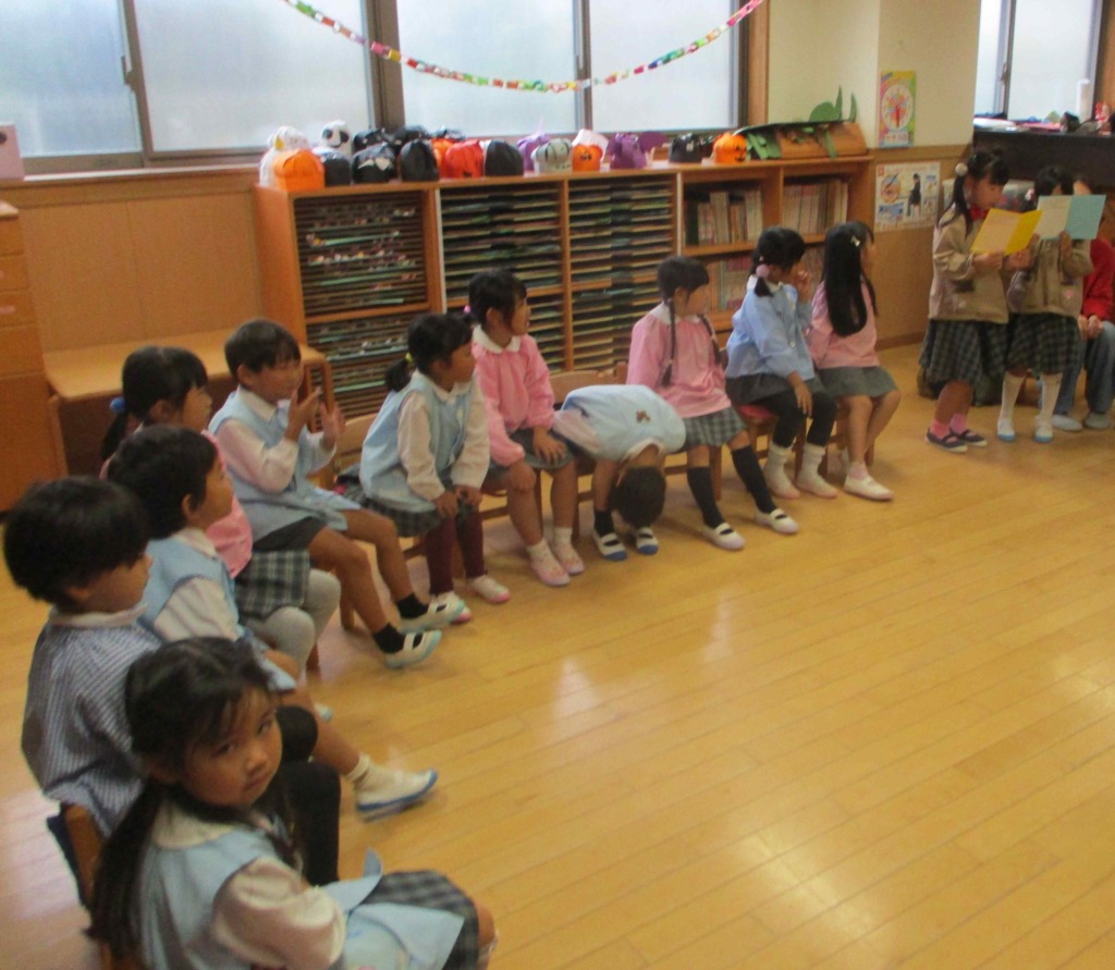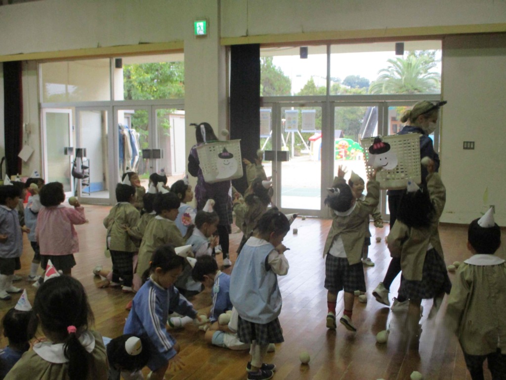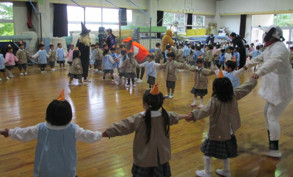 今日はハロウィン🎃年少組はリズム室でゲームをしたりして楽しんでいました(*^-^*)かぶっている帽子は手作り!可愛かった💕先生たちも気合をいれて仮装していましたよ(*^▽^*)