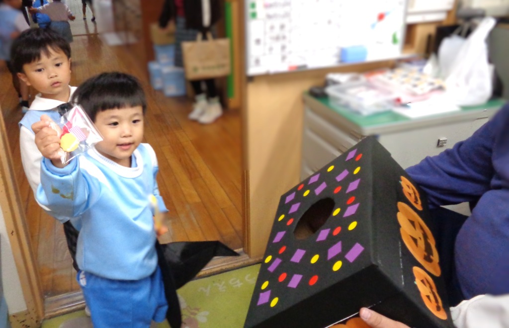 年長さんが「トリック オア トリート」とお部屋にやってきて
