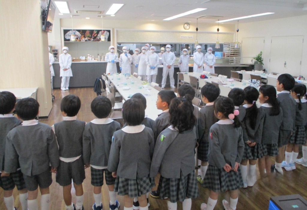 今日は年長組が大阪青山大学にテーブルマナー研修に行きました💡前回はナイフとフォークを使っての研修でしたが、今回はお箸を使っての研修をおこなってもらいました(*^-^*)