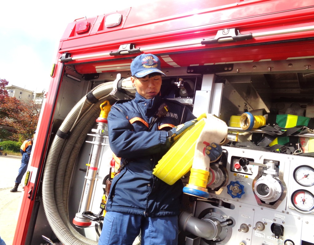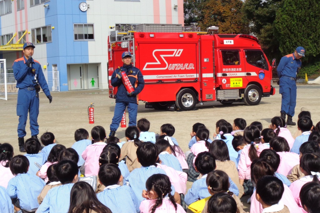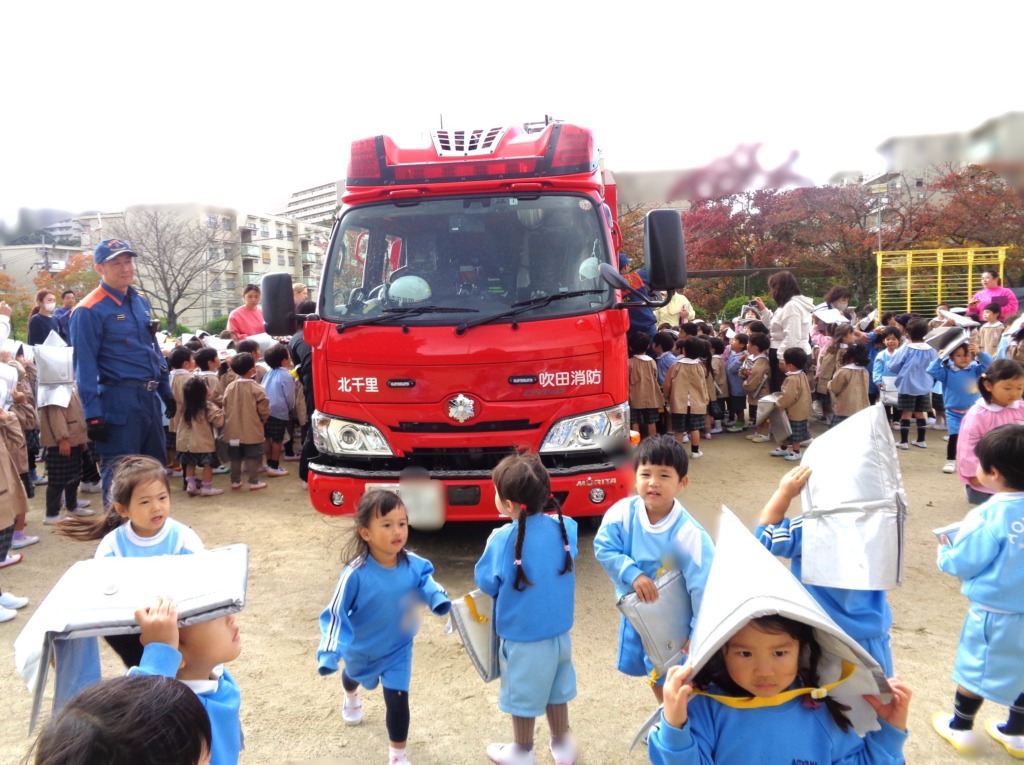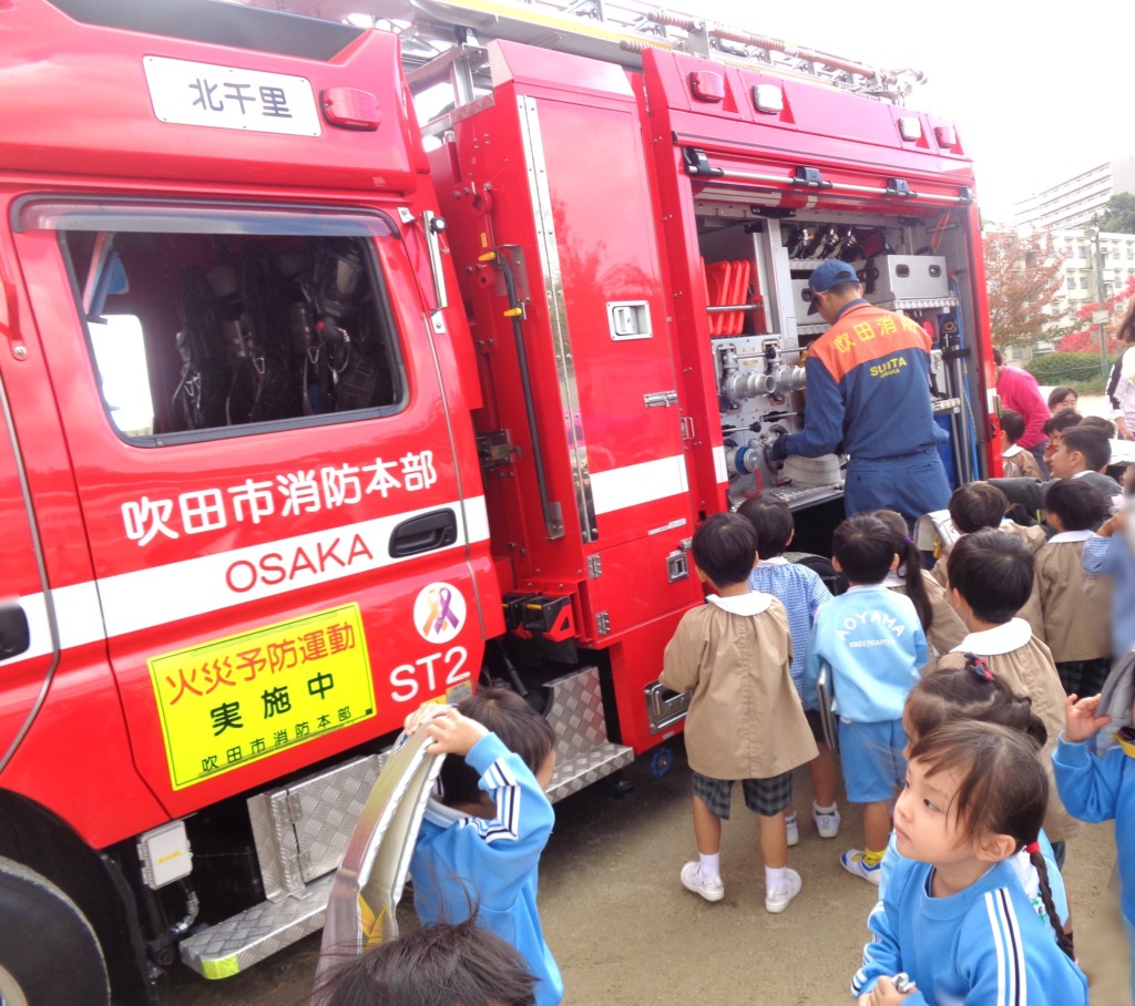 今日は、吹田市の消防署の方々が来てくださったので、子ども達は大興奮!
