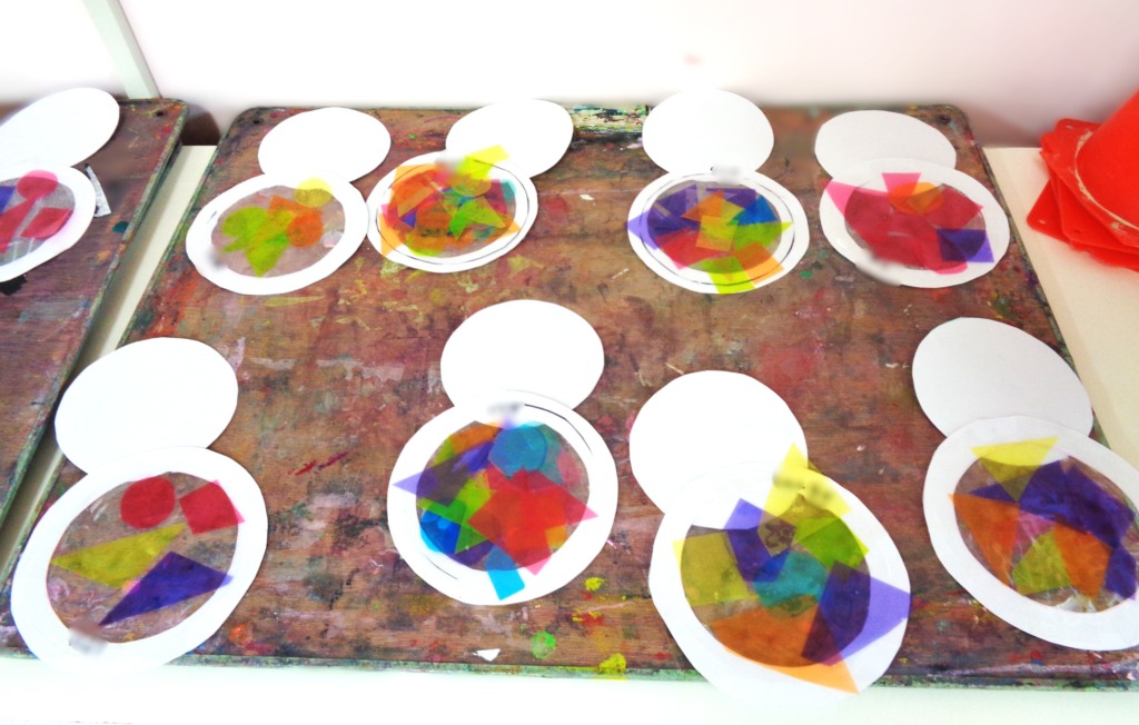 光にすかしてみると「きれい!」「できたよ、みてみて!」と