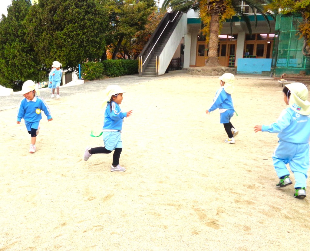 しっぽを目指して『まてまて~!』と笑顔で追いかける子ども達。