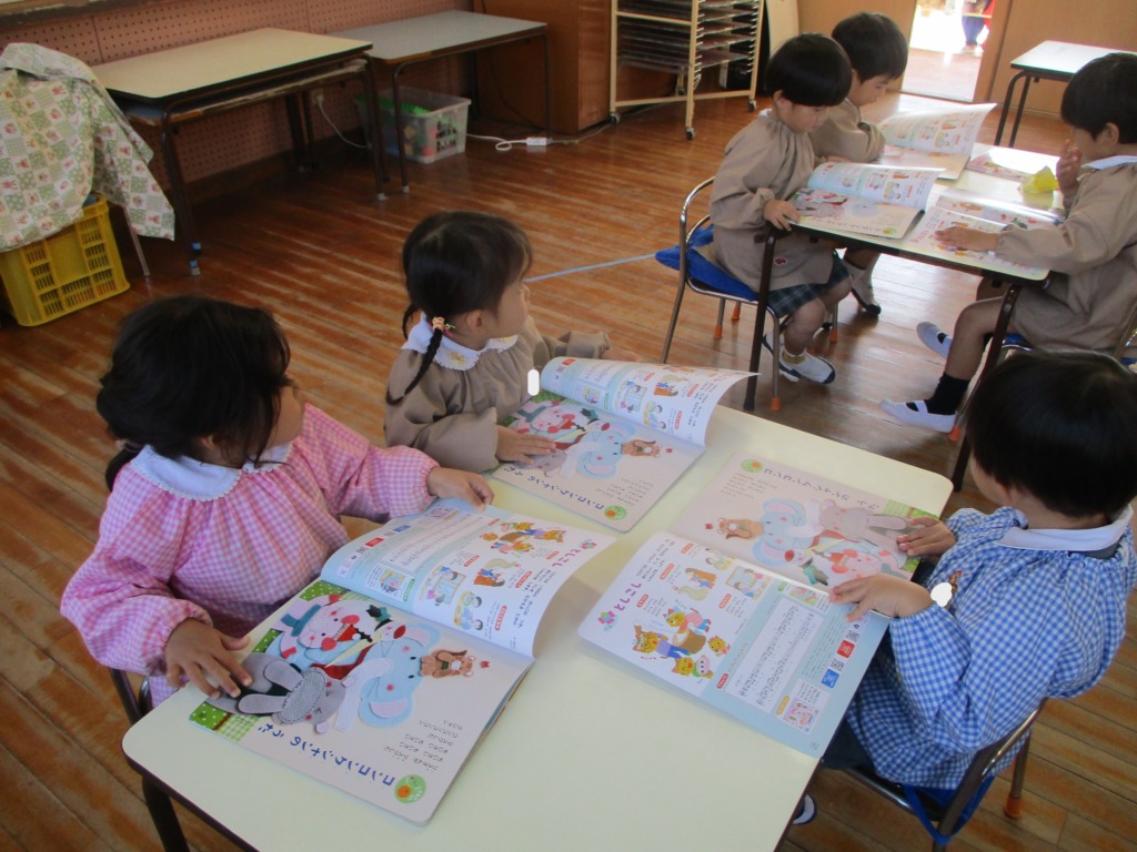今月の歌は「コンコンクシャン」です。絵本を見ながら歌っていました。
