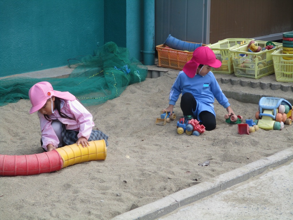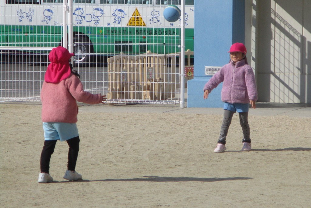 運動場ではボールあそびや砂場など、お友だちと仲良く遊んでいました。