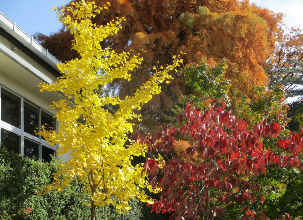 イチョウの葉を拾って、すてきな束を作るのが流行っています。