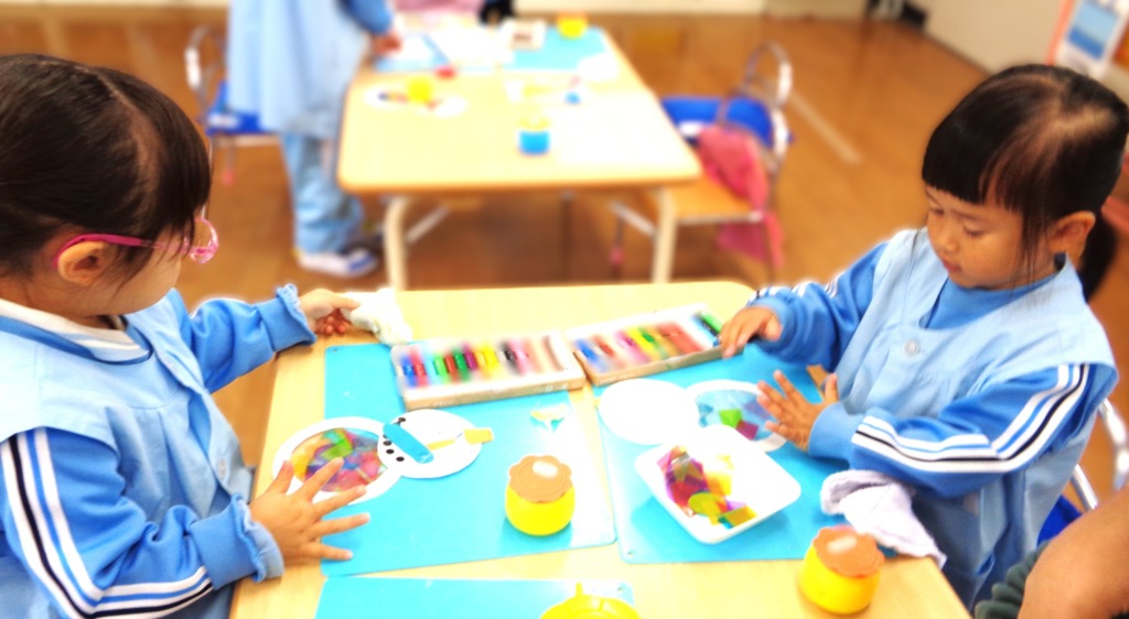 小さい部品は、のりは少しだけ・・・と自分たちで考えて