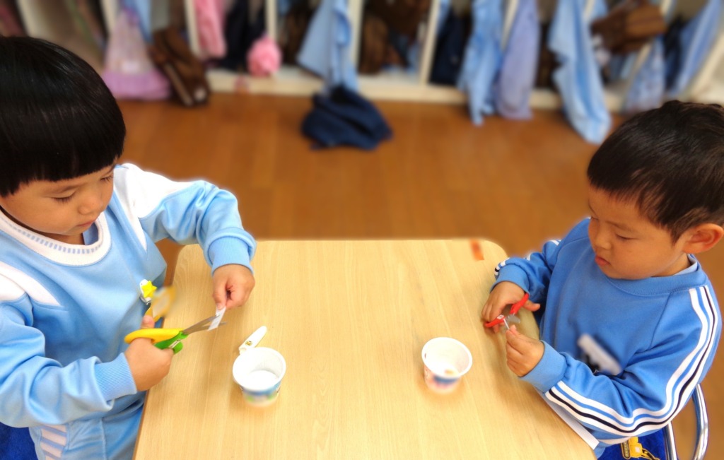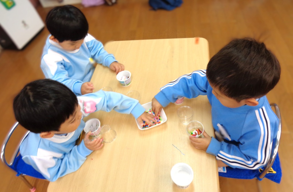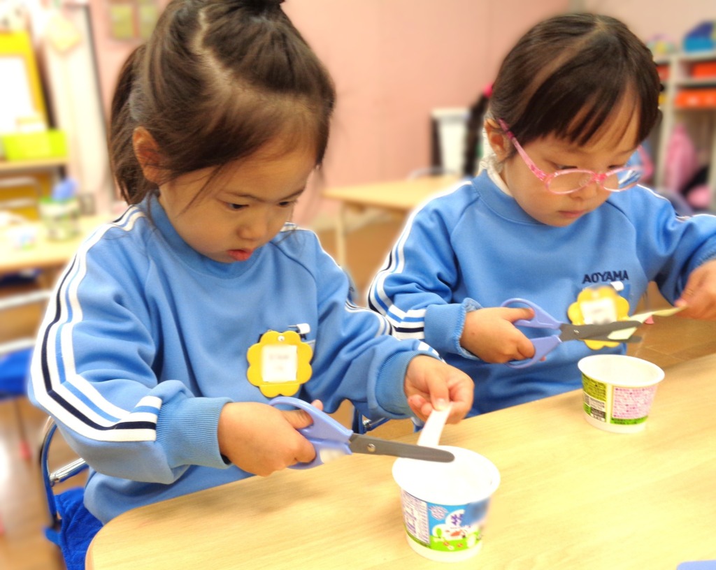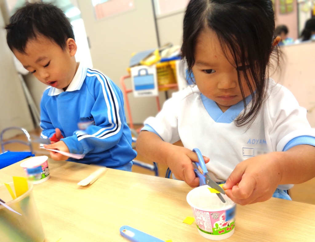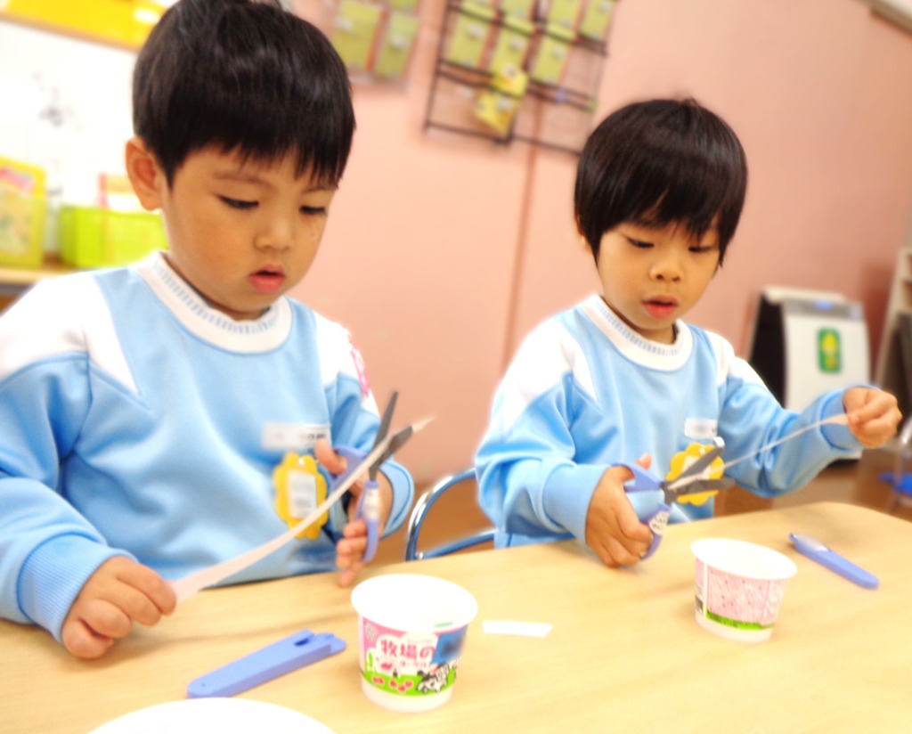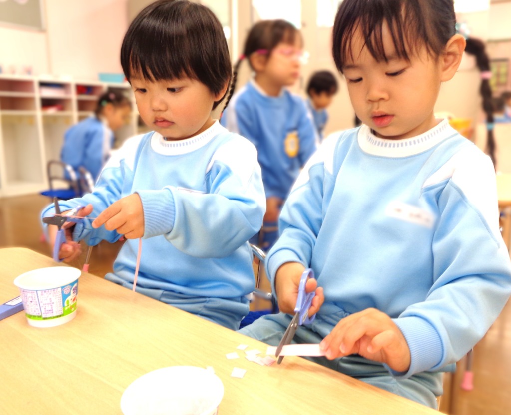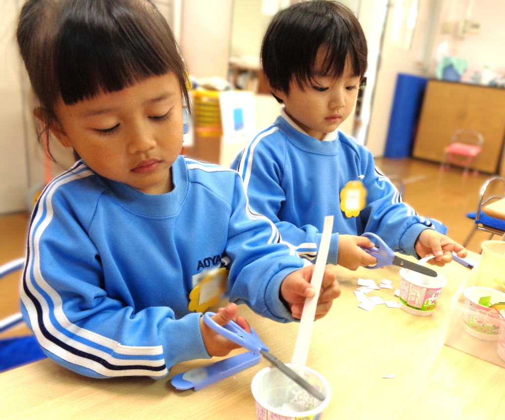 長細い画用紙をチョキン、チョキンと切っていきました。