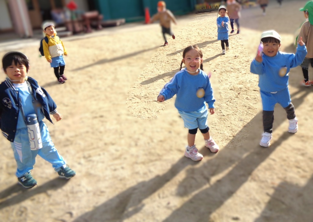 朝の準備をサッと済ませて、いそいで運動場にでかけています!