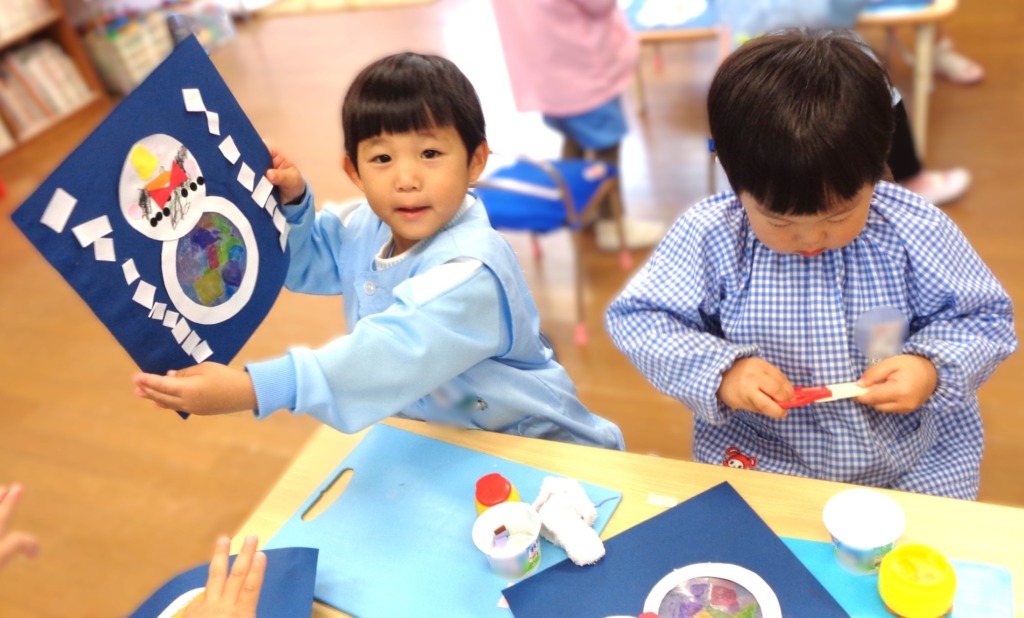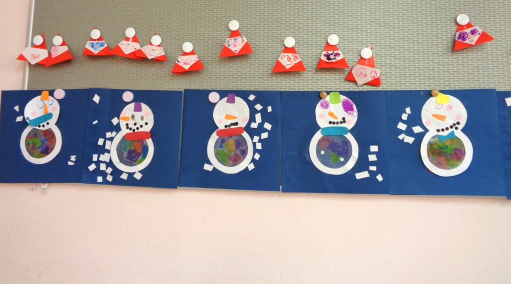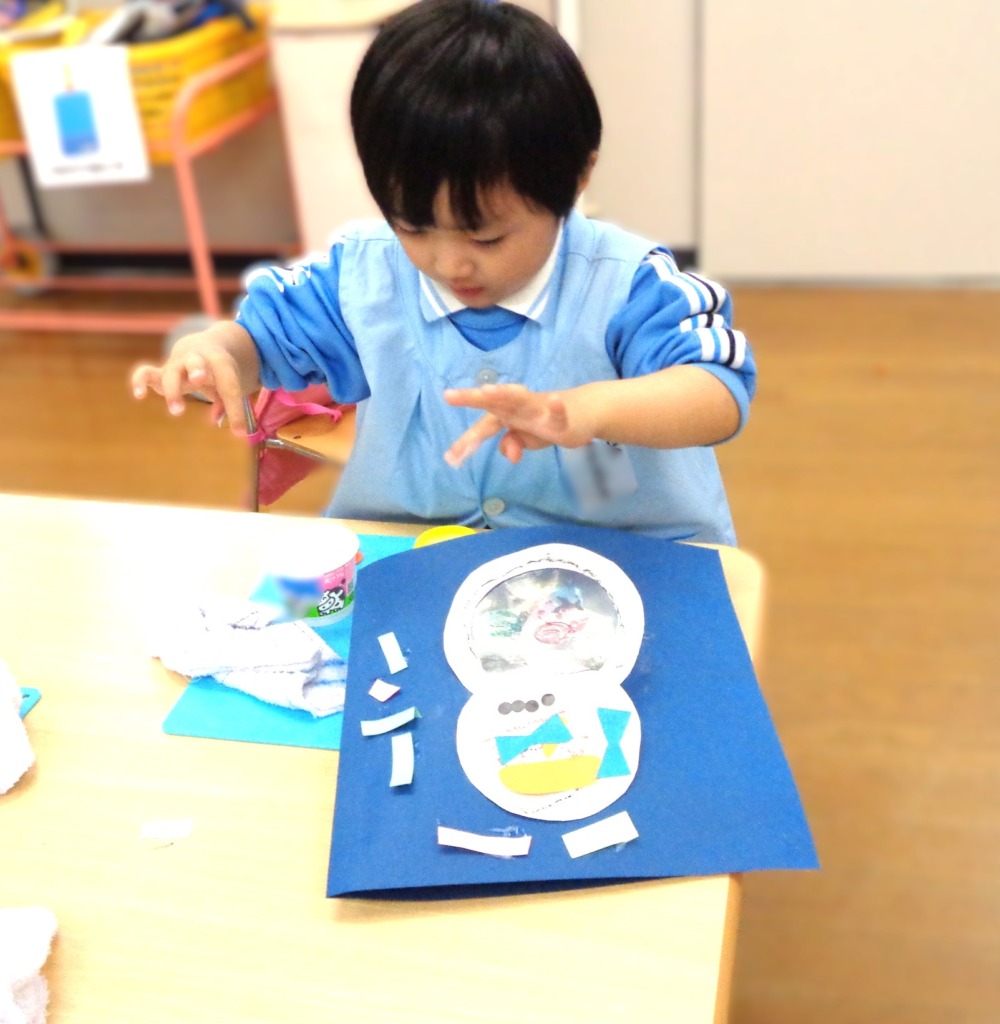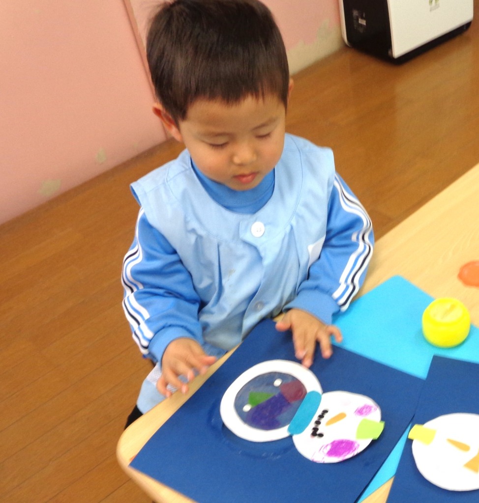 台紙に貼って、冬(クリスマス)にむけた制作をしました。