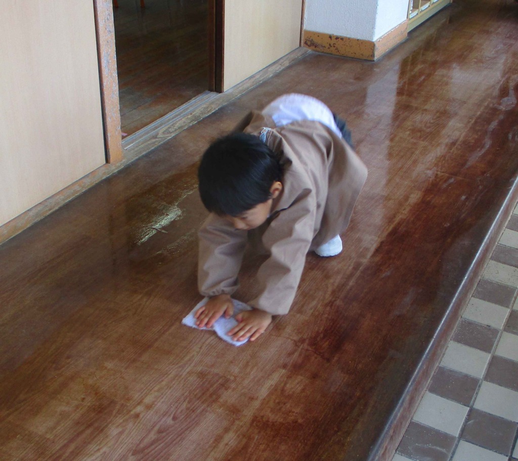 引き続き大掃除!(^^)!廊下を拭いたり靴箱の中を掃いたり…使ったものを協力して掃除してくれました(^^)/