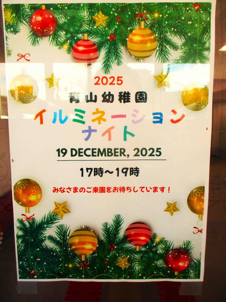 今夜は青山幼稚園、イルミネーションナイト✨が開催されます!!待ってま~す(^o^)/