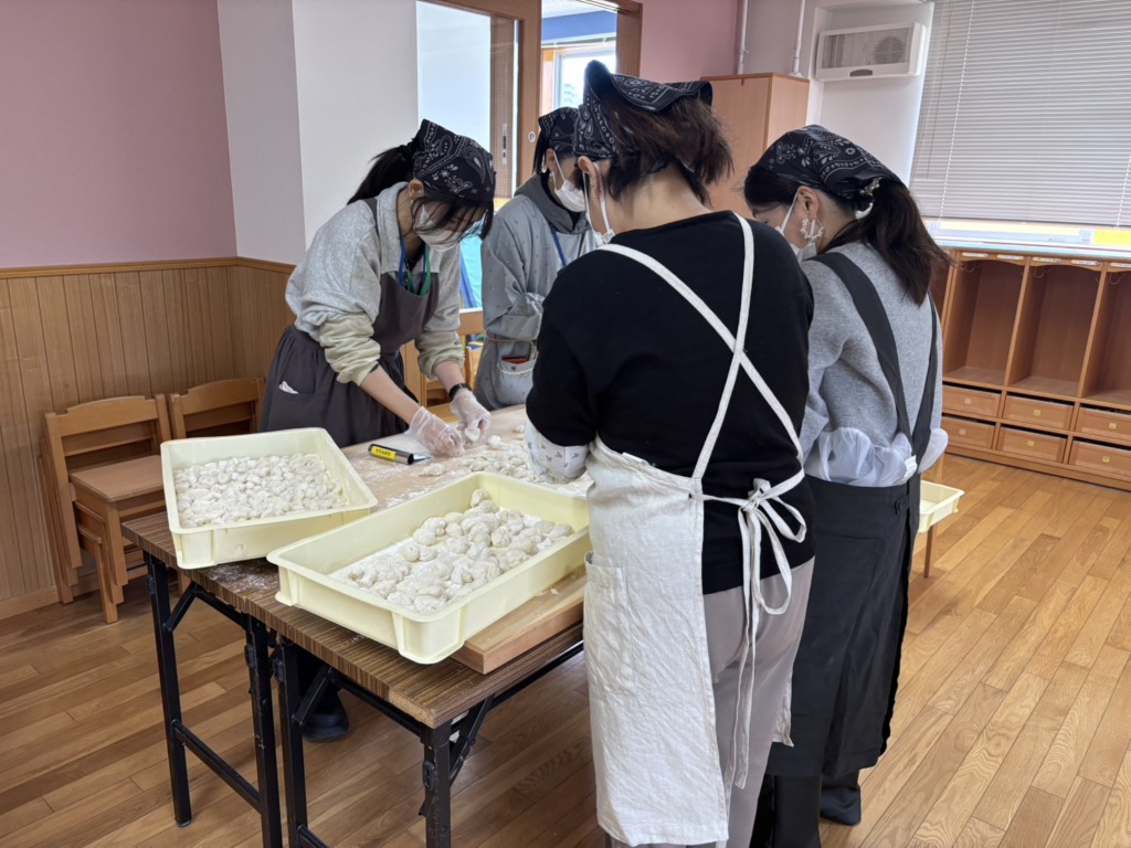 運営委員では、つきあがったお餅を給食で食べられるように切るお手伝いをさせて頂きました。