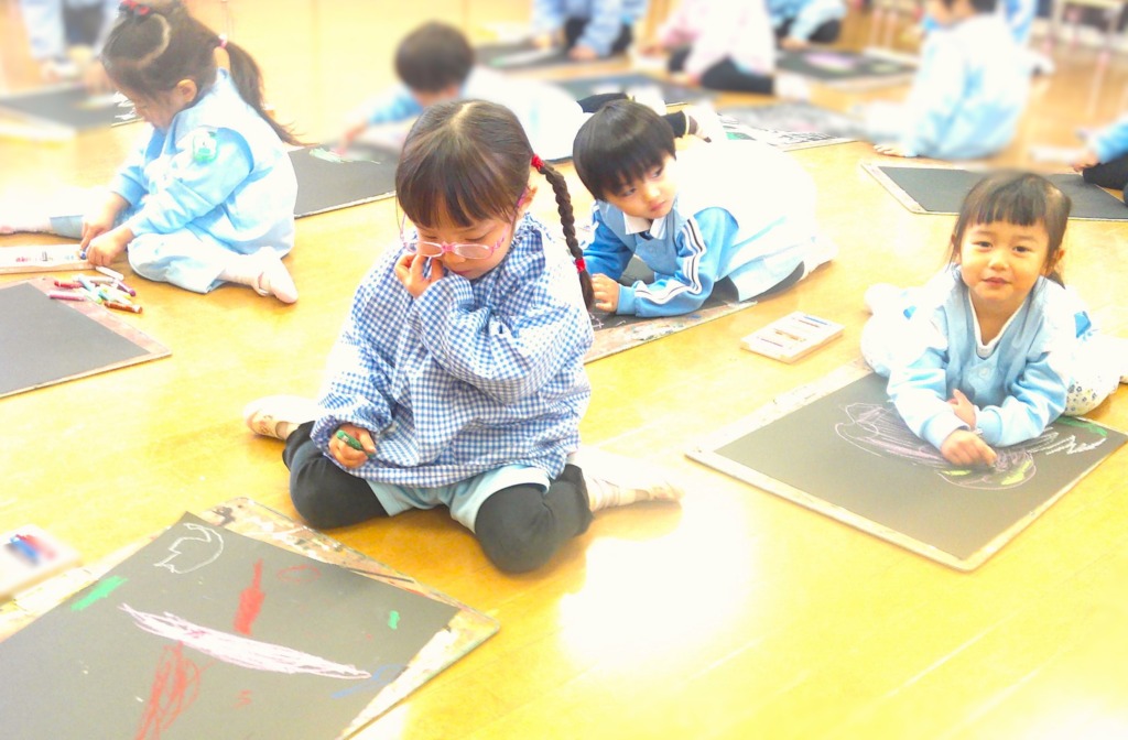 その通りに、みんな力づよくクレパスを握って色塗りをしていました💪✨