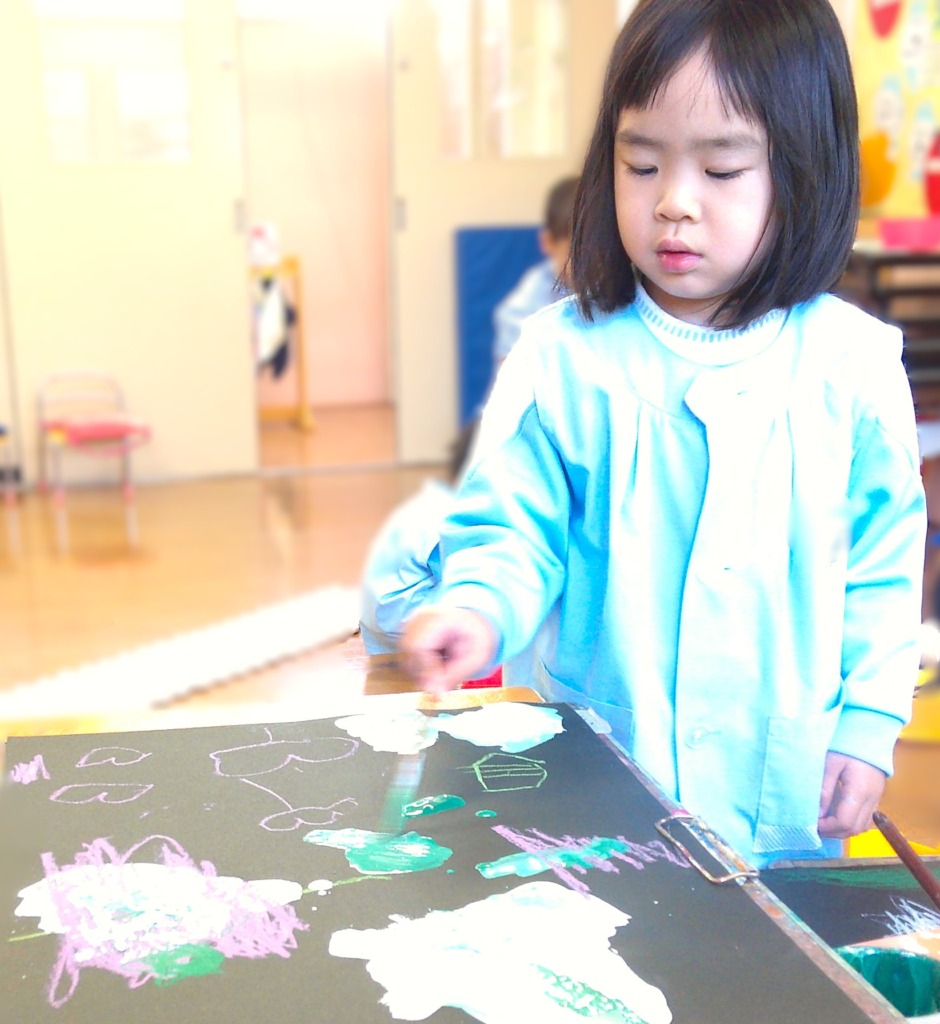 今日は黒い画用紙に描くので、大根の色塗りをがんばろう!と話してから始めました。