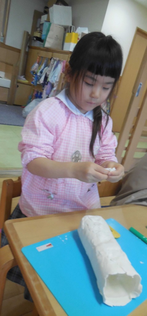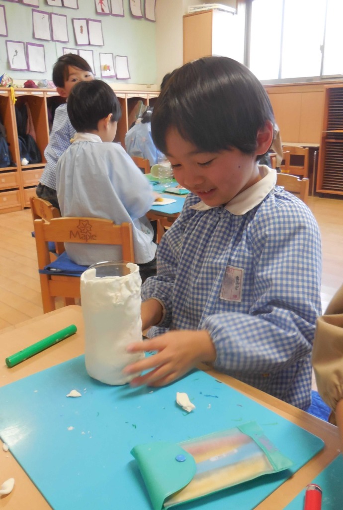 2月の制作展に向けて様々な活動が始まっています(*^_^*)紙粘土や段ボールを使っているクラス、紙袋を被っているクラスもあったり…どんな作品ができるか今から楽しみです♬