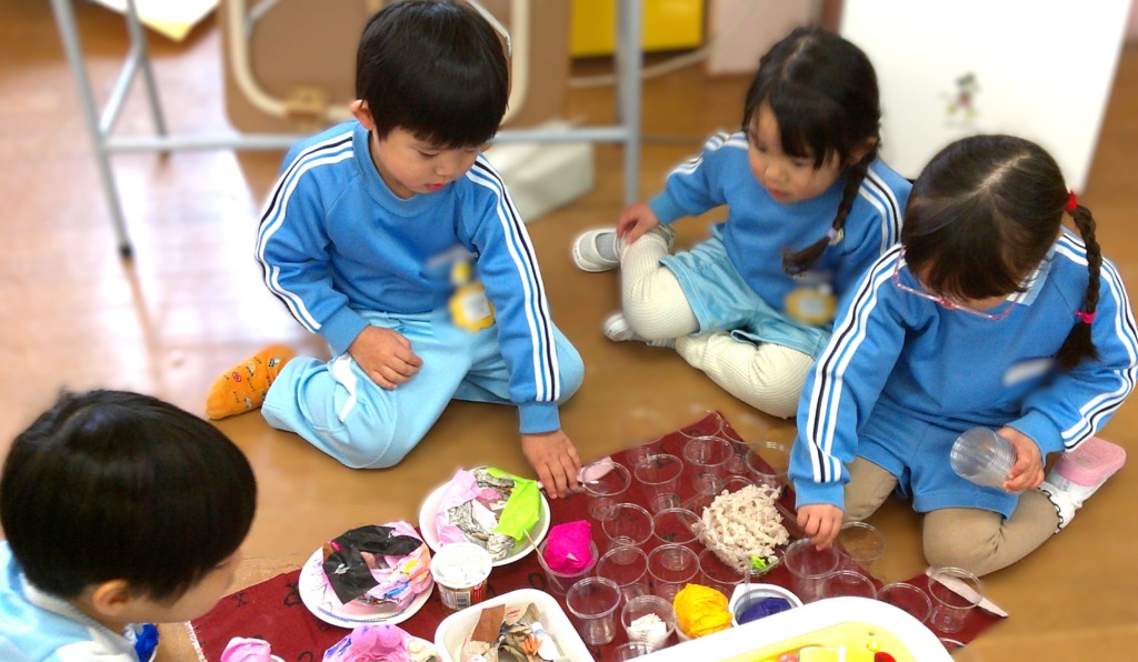 みんなでお部屋をまわったあとは、作品をつかって遊びました!