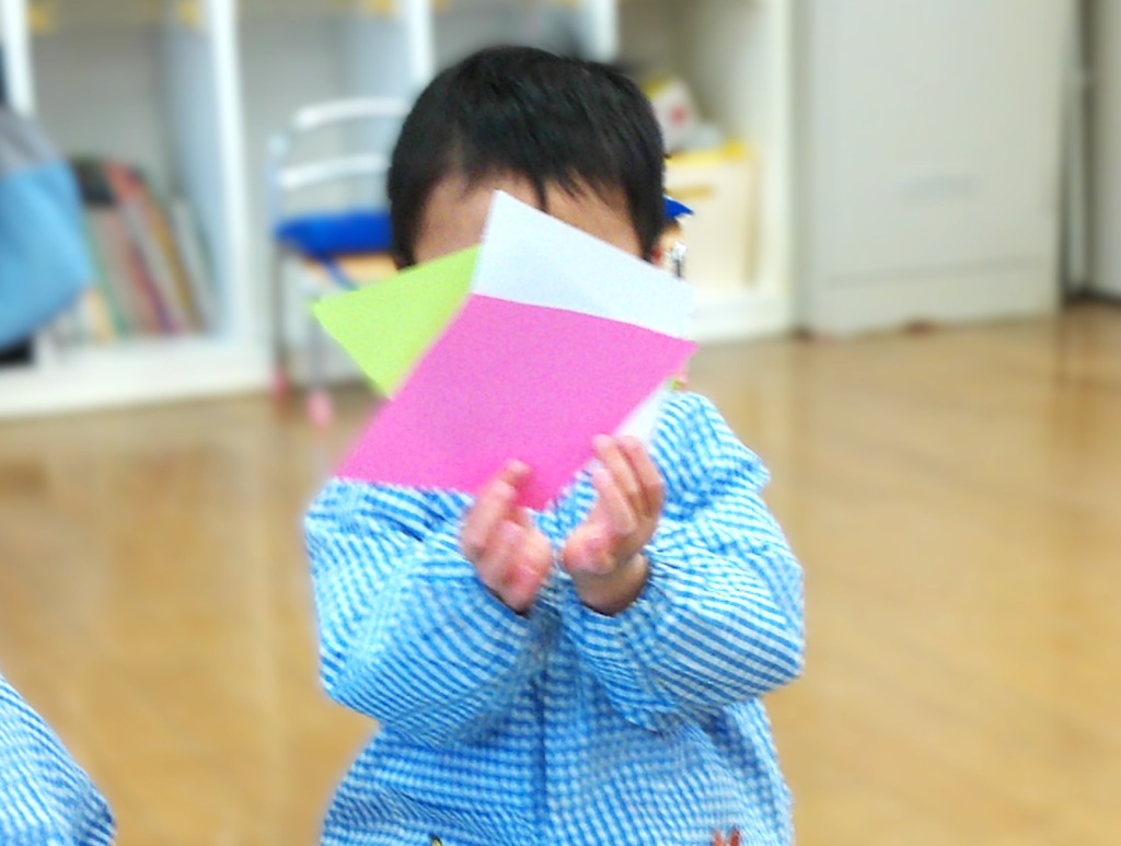 ひしがたの画用紙を見て、「ダイヤみたい~☆」と嬉しそうに友達と見せ合いっこしたり