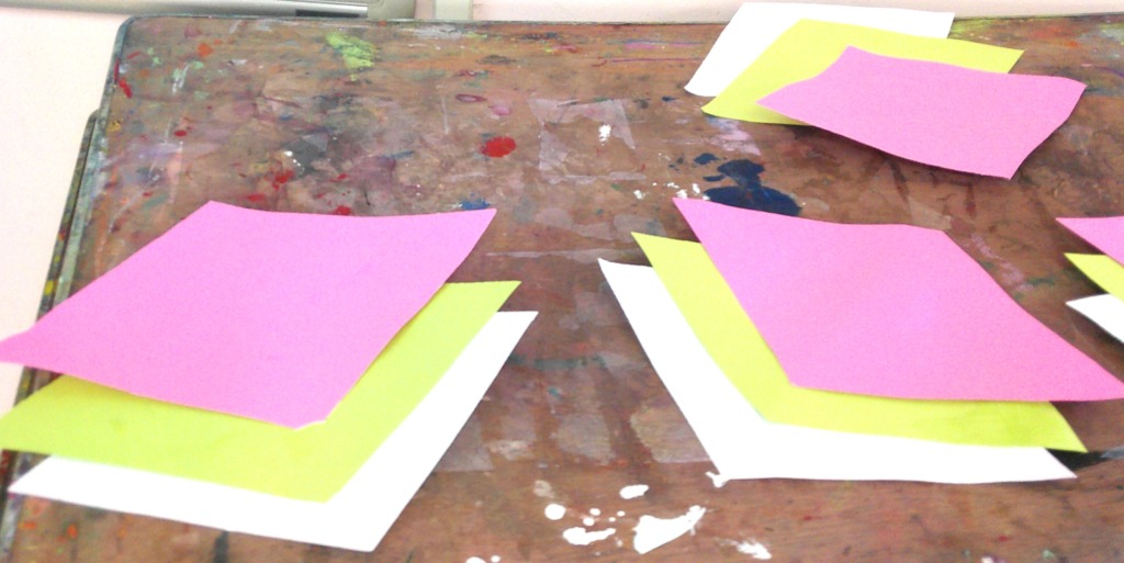 画用紙を貼るときに、下の色がほどよく見えるように重ねるなど、