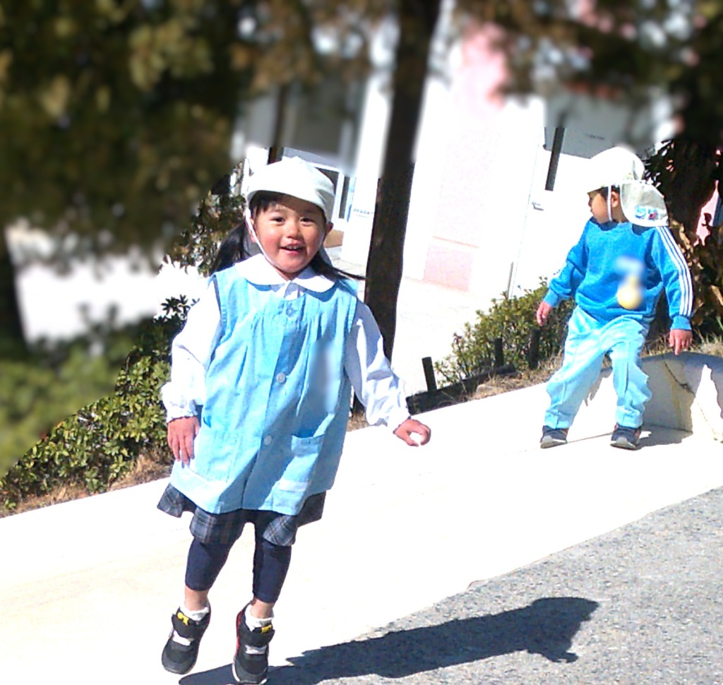 幼稚園に着いたら、ブレザーを脱いでスモックに着替えます!