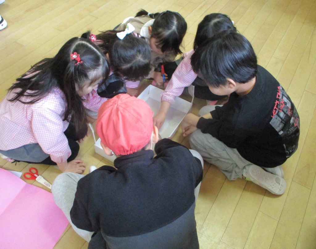 今日は青山台小学校の5年生が幼稚園に遊びに来てくれて、年長さんと交流会が開かれました💡自己紹介をした後グループに分かれて制作をしました!制作中はお兄さん・お姉さんが色々と考えてくれて子どもたちは尊敬の眼差しで見ていました(*^^*)最後まで制作を楽しんでいました♪何より兄さんたちの優しさに子どもたちは虜になっていましたよ(*´▽`*)