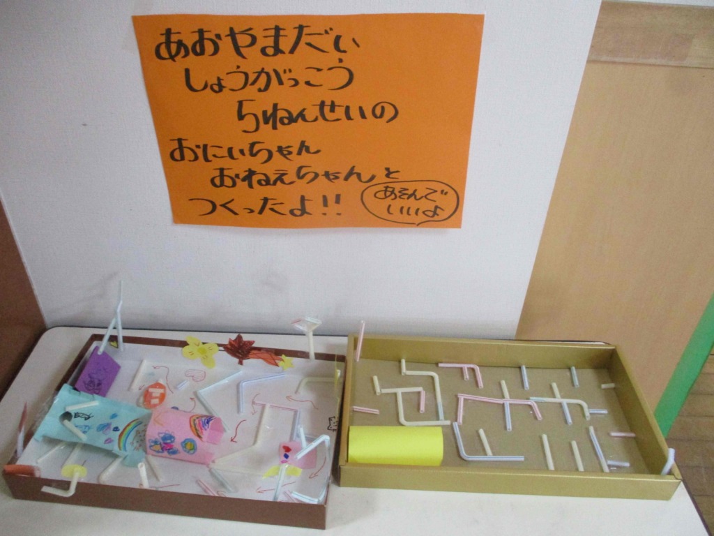 制作が終わった後も、外で一緒に遊んでくれて子どもたちは大満足♪素敵な交流会になりました(^_-)-☆青山幼稚園を卒園したお友だちもいて久しぶりに会えて嬉しかったです(≧▽≦)青山台小学校の皆様ありがとうございました☆