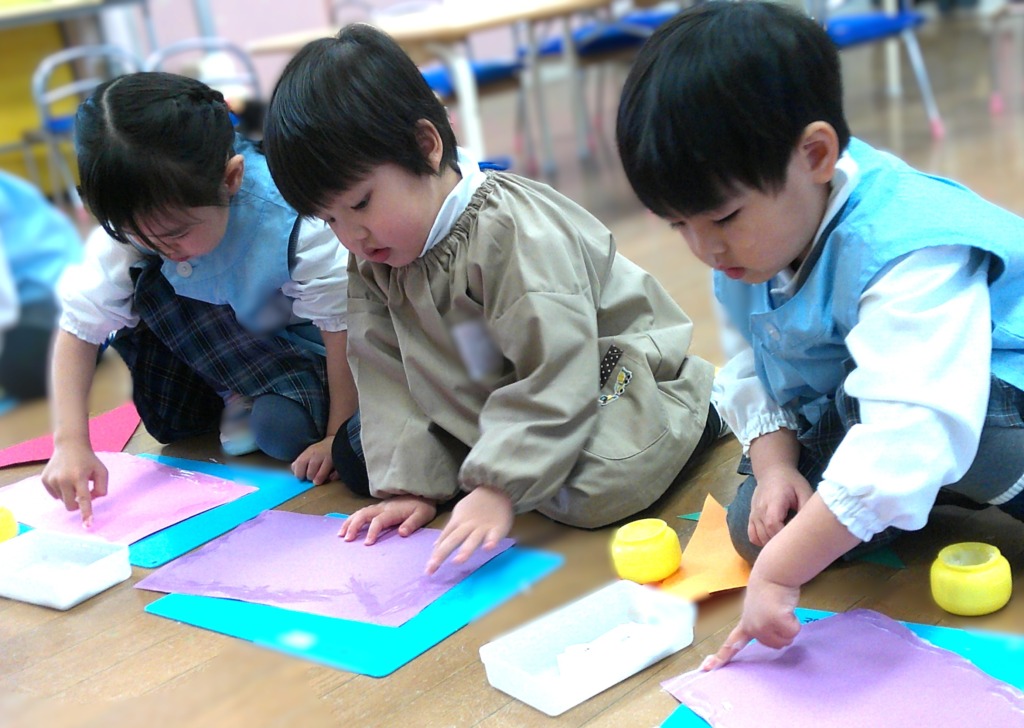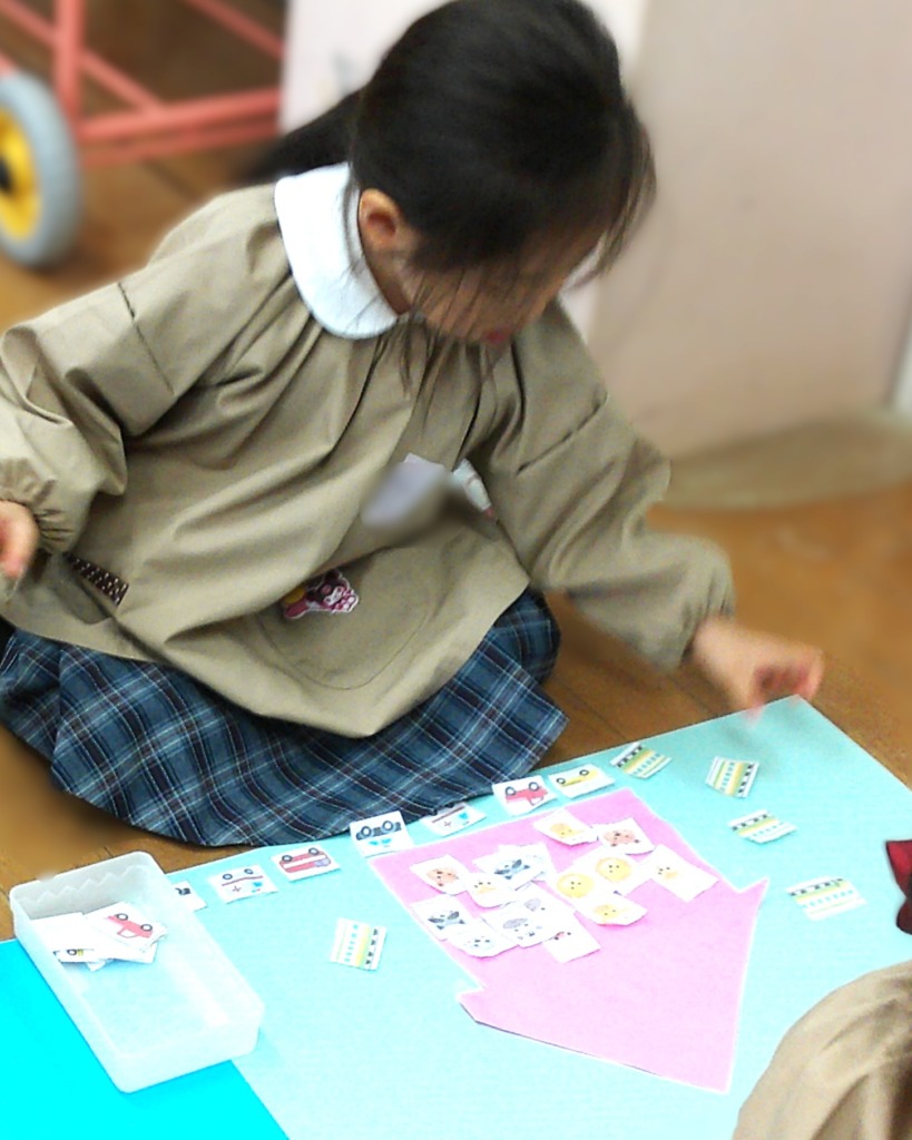 四角と三角の画用紙にも、大きいものと小さいもを用意していたので