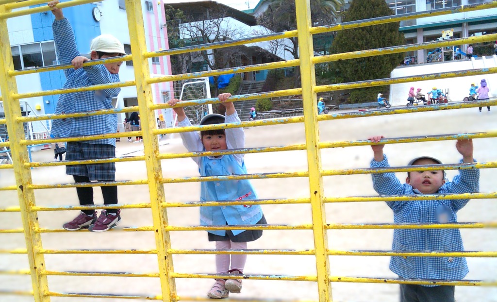 固定遊具を使って、運動場をぐるぐる走り回って楽しんでいました!