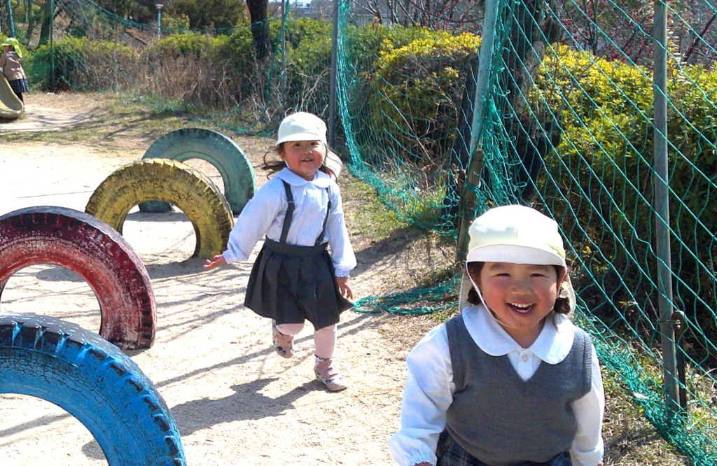 ニコニコ顔で走っていく子どもたち。